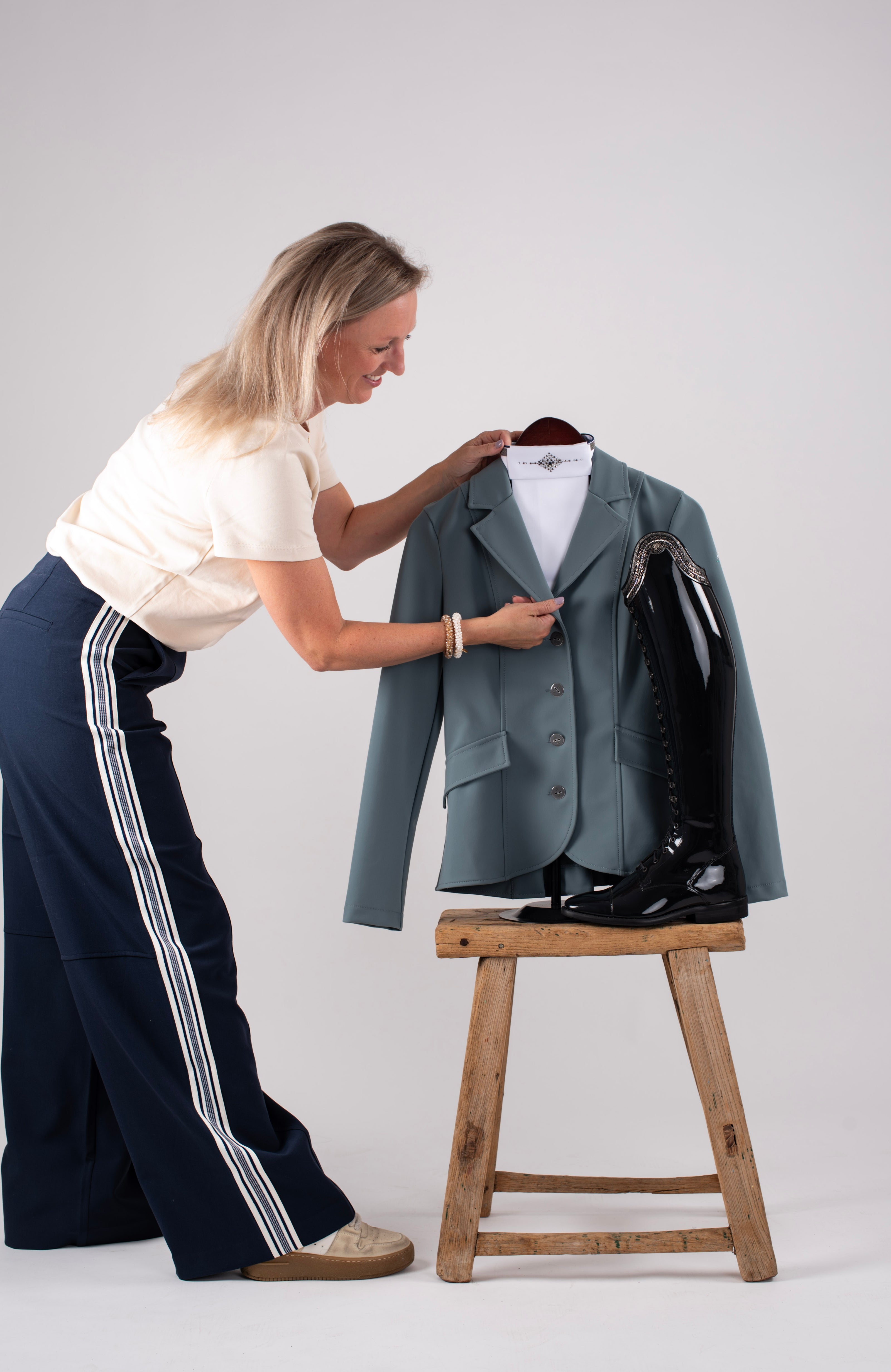 De ideale outfit – of het nu gaat om je rijlaarzen, wedstrijdjas, of een outfit voor jou en je paard – bij DB Concepts maken we samen jouw perfecte outfit voor thuis of op concours!
