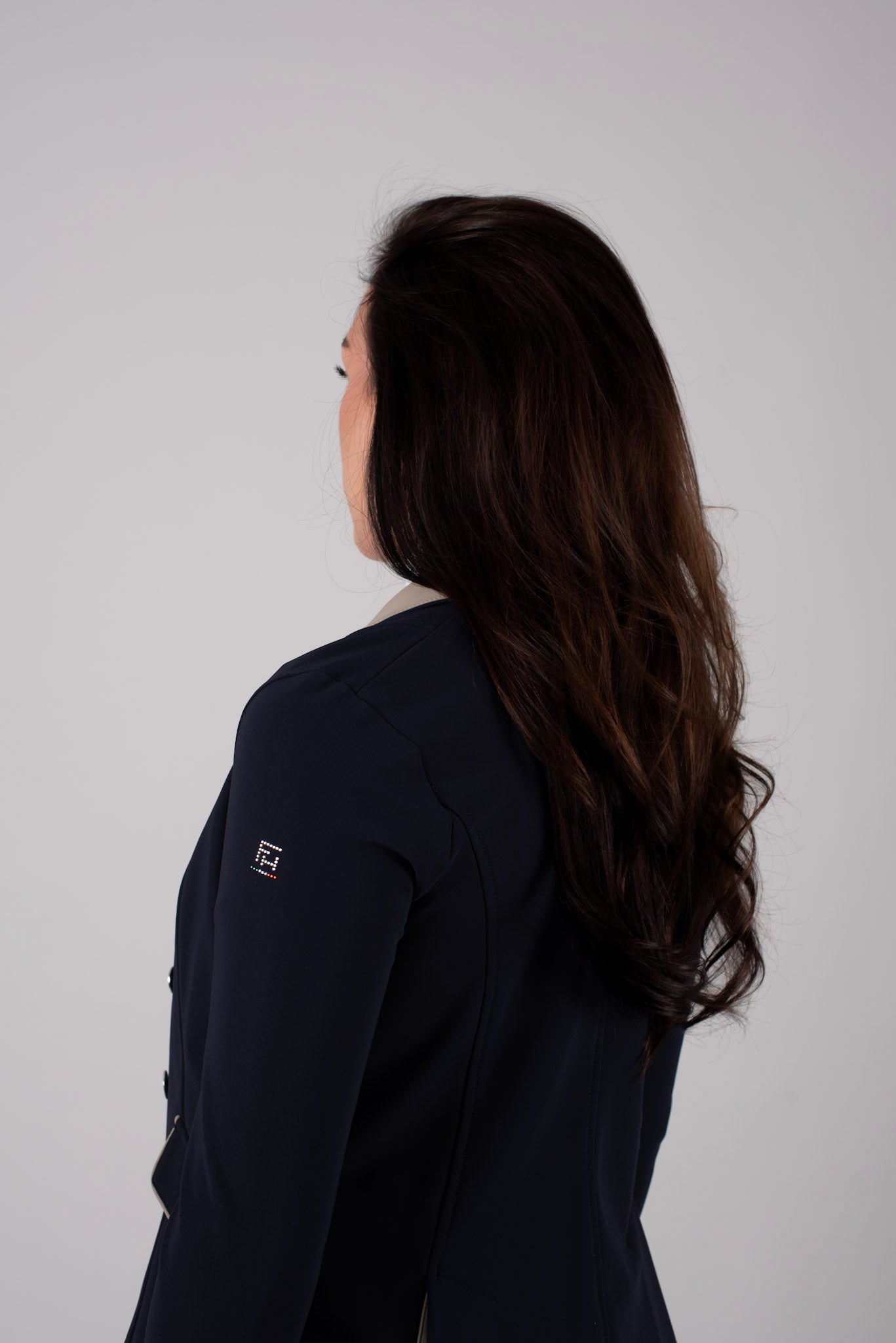 De CRISTINA van For Horses Italië is een elegante, klassiek gesneden wedstrijdjas die elke ruiter combineert met ultiem draagcomfort. Dankzij de innovatieve Italiaanse stof voelt de jas zijdezacht aan, is hij extreem licht én ademend. De multi-stretch technologie zorgt ervoor dat je volledige bewegingsvrijheid hebt in het zadel, zonder in te leveren op stijl.